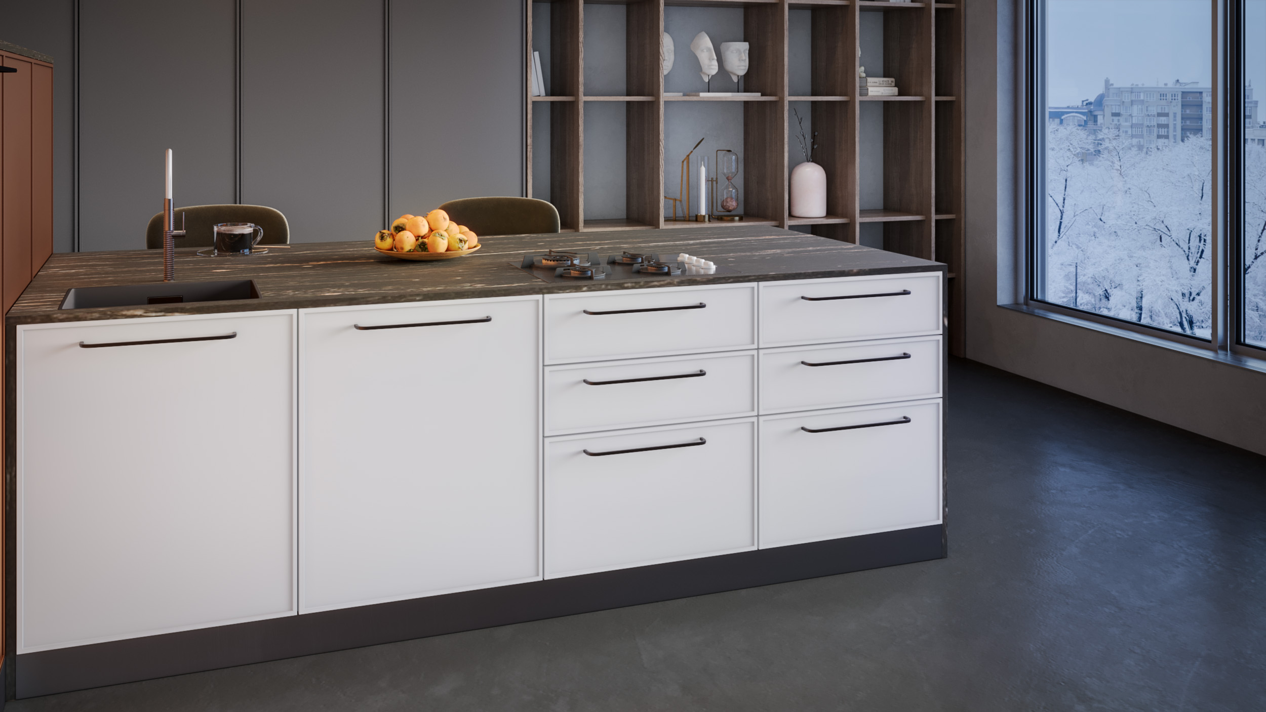 Благодаря простоте линий, тонкие рамки фасадов создают в помещении гармоничную и легкую атмосферу. Отсутствие излишних деталей придает дизайну модели SHAKER LINE максимальной лаконичности.